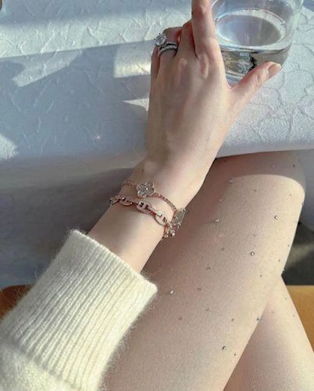 Add a touch of elegance to your wardrobe with our Clover Gold Bracelet. Crafted with five interlocking clover motifs, this bracelet is a timeless piece that will elevate any outfit. Its classic design makes it a versatile accessory for any occasion. Treat yourself or a loved one to this beautiful and meaningful piece.